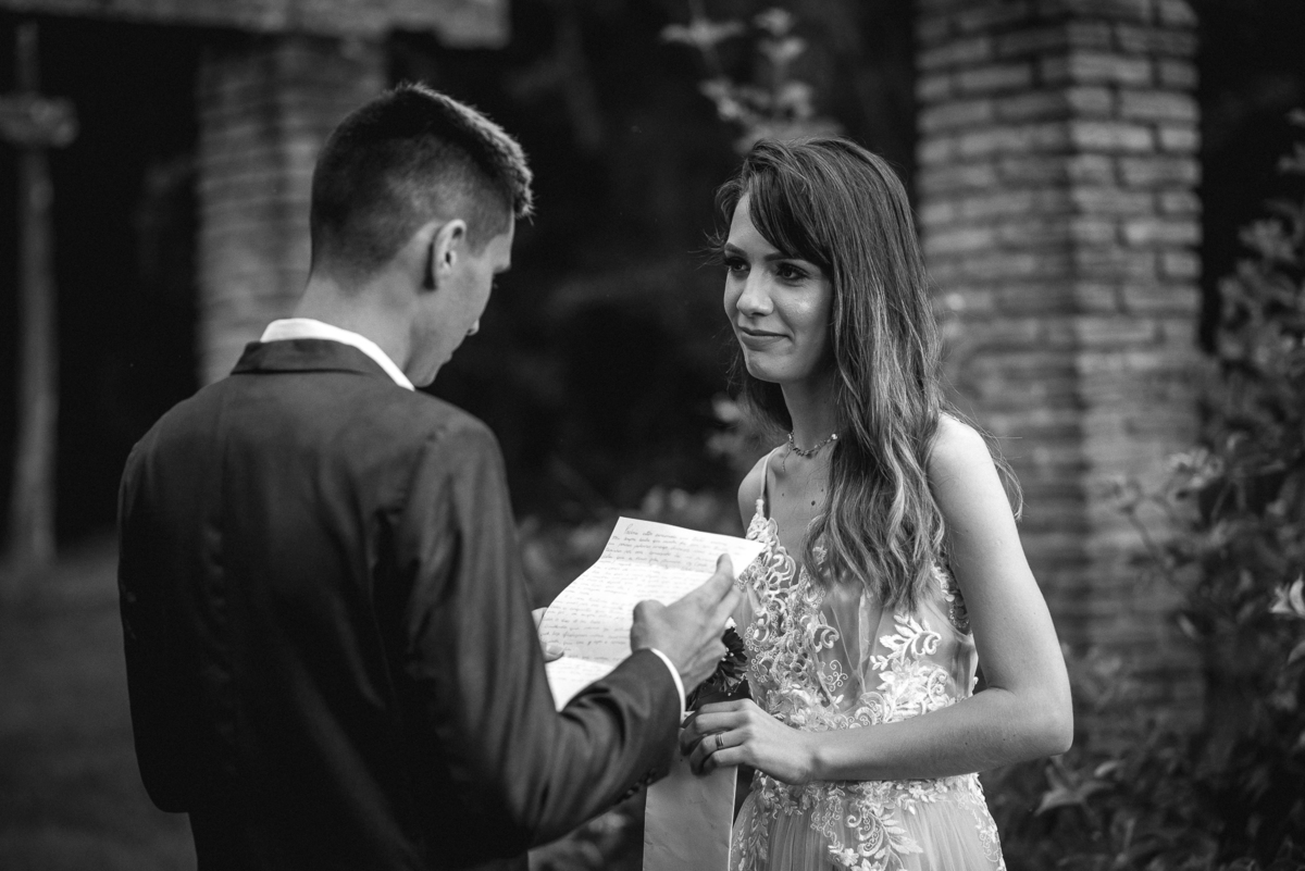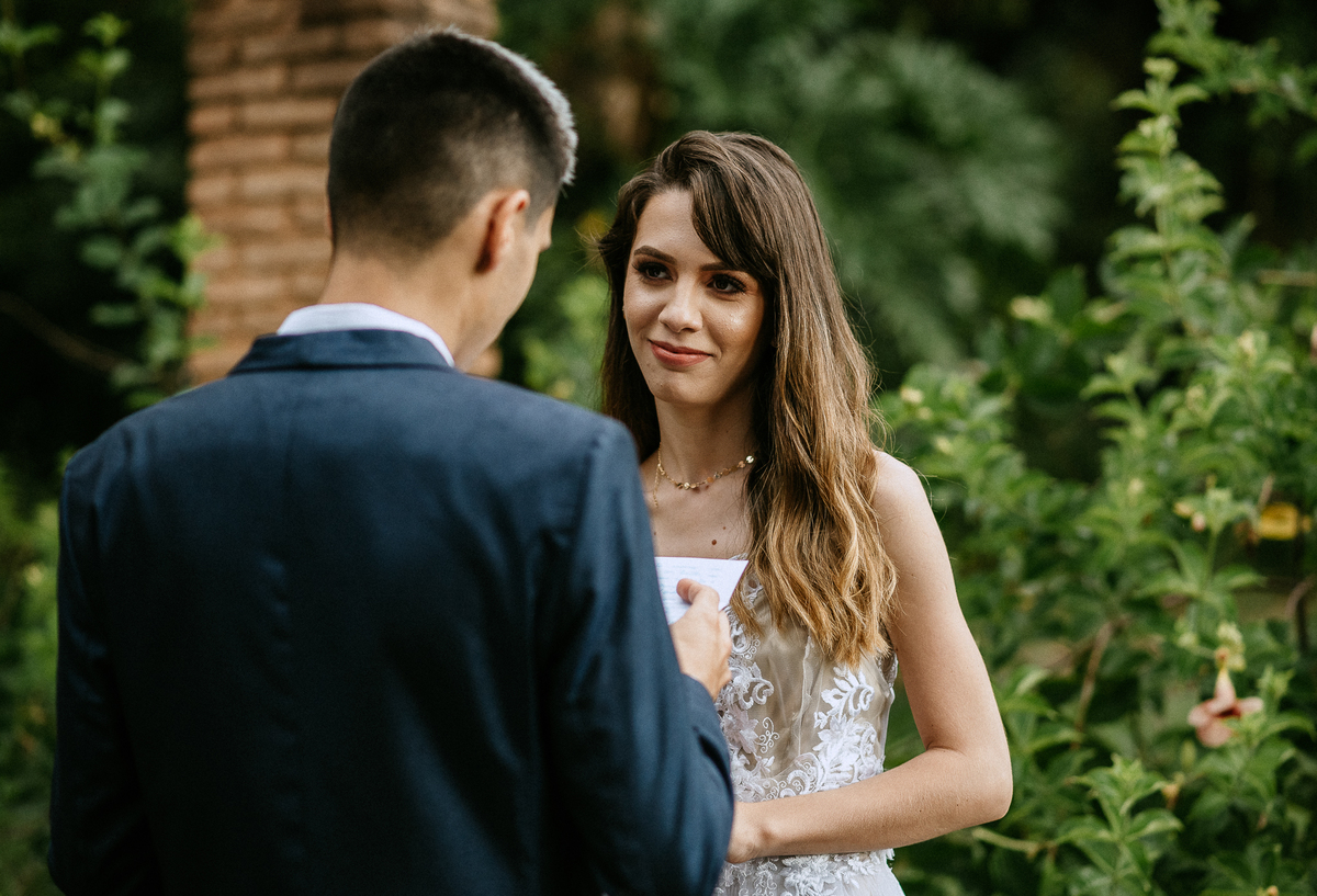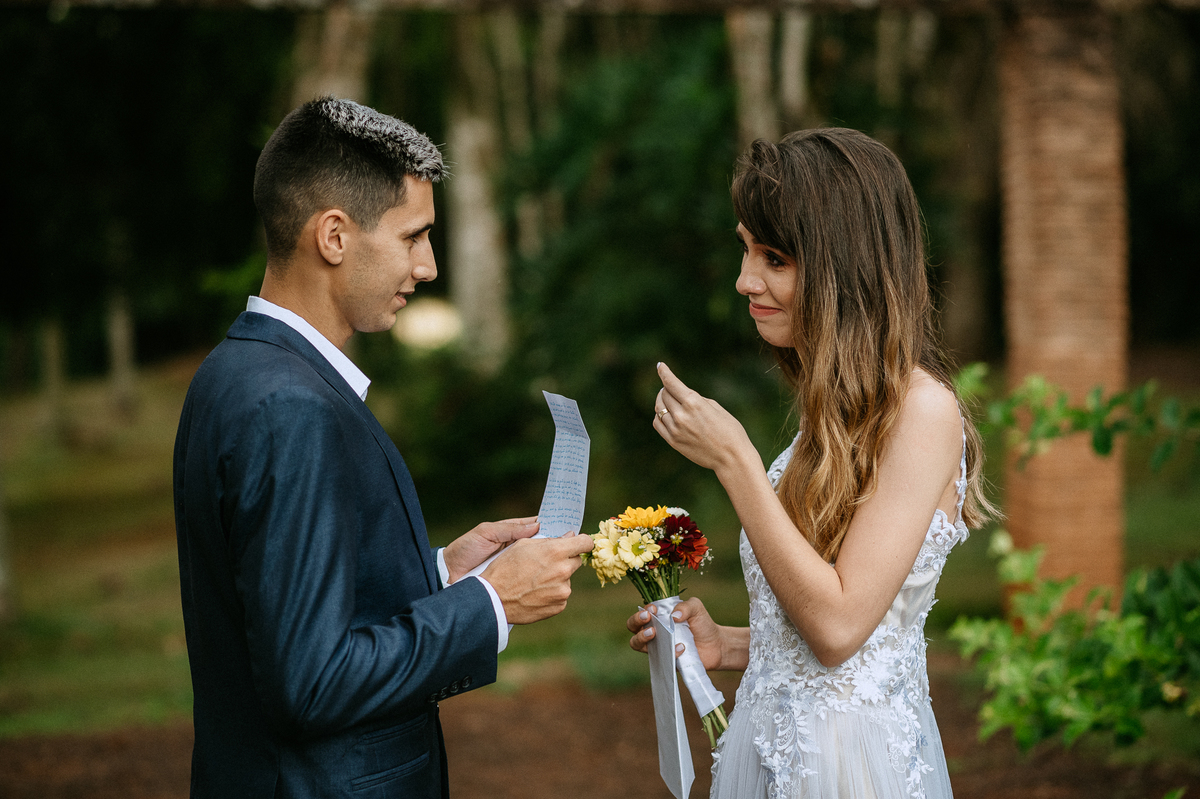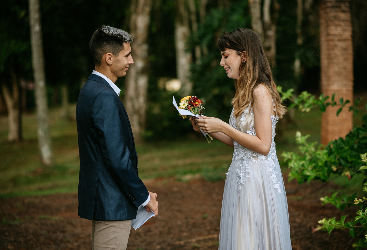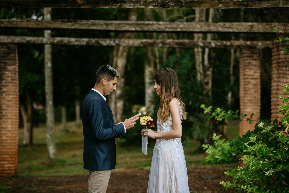 A Bruna e o Matheus optaram por fazer um elopement (casamento a dois), a leitura dos votos foram lindas, fica difícil até de descrever em palavras.