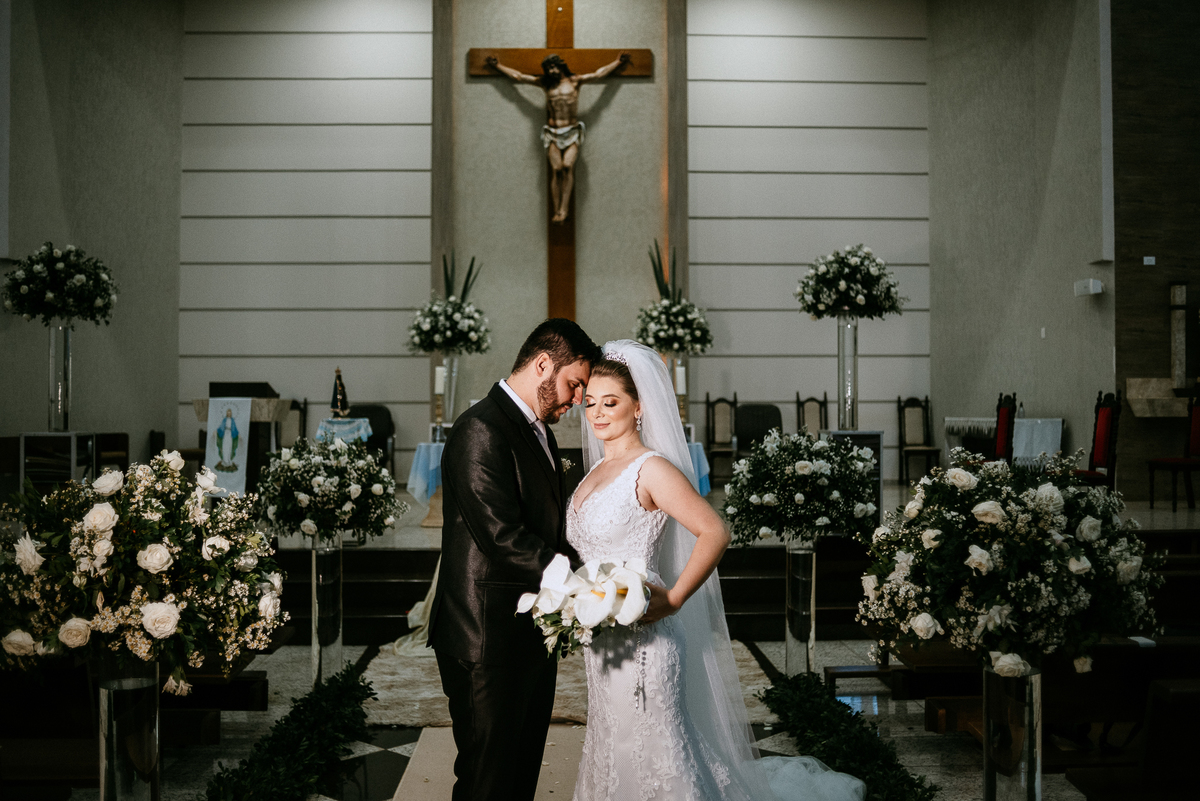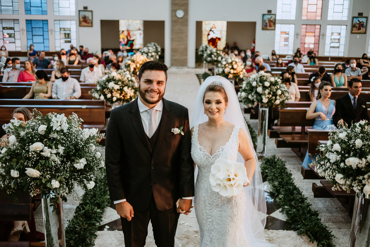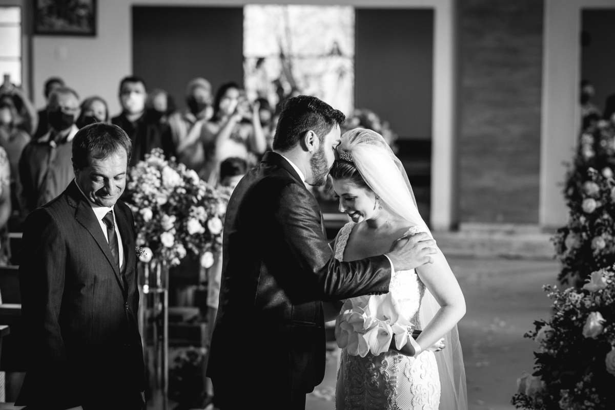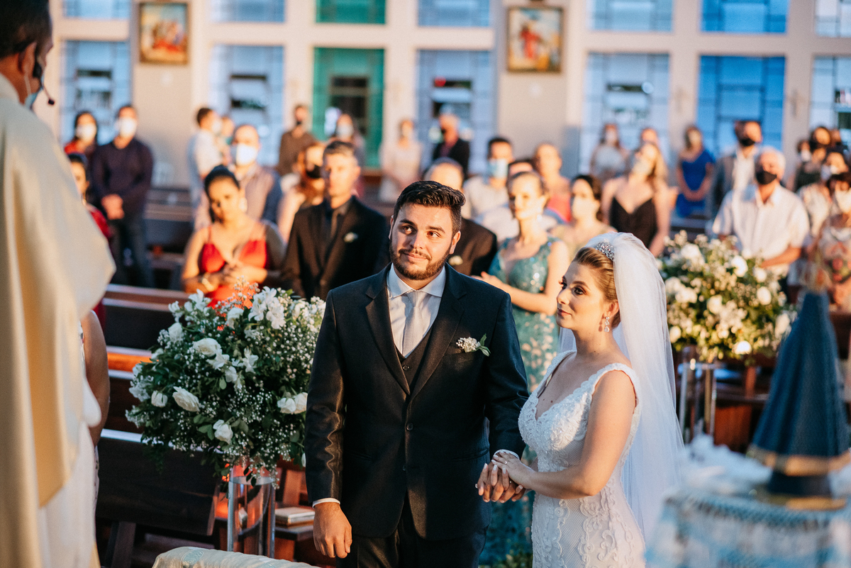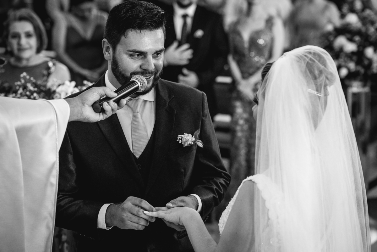 Um casamento lindo e repleto de emoções, casal apaixonado e sorridente do inicio ao fim.