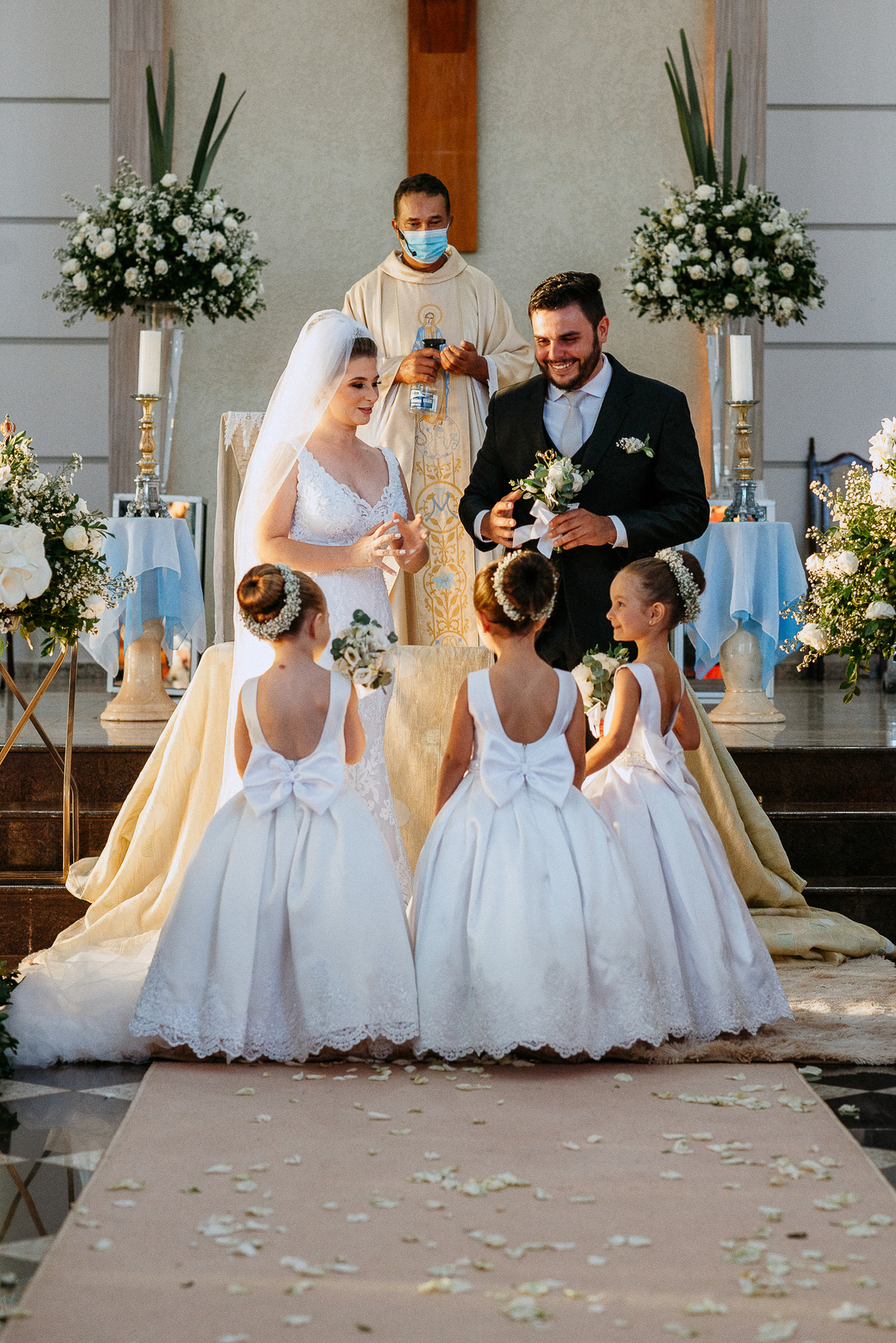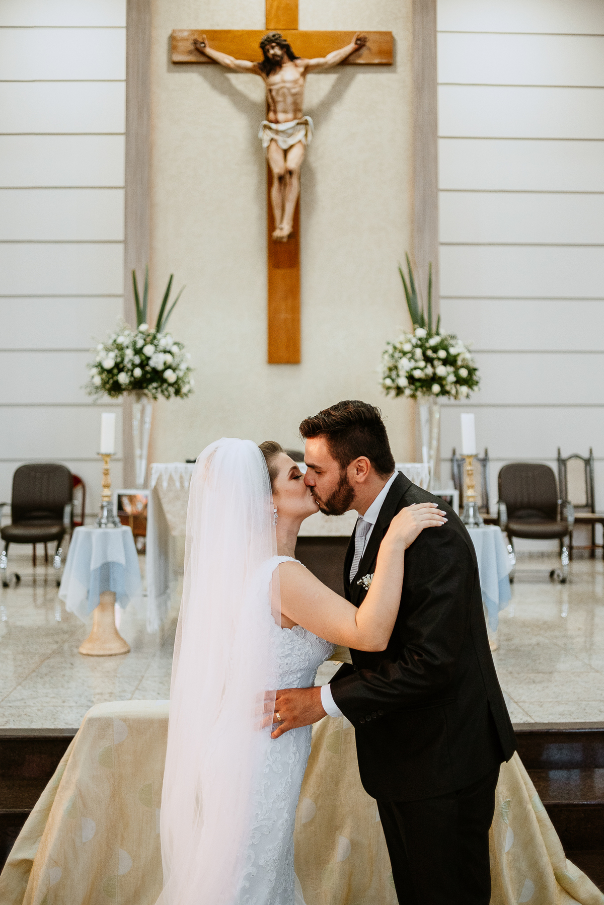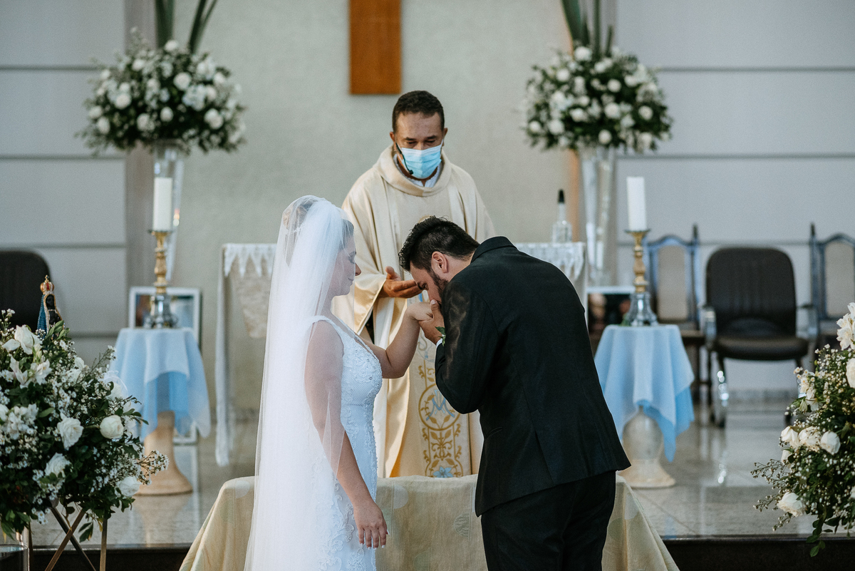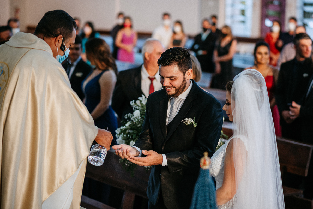 Um casamento lindo e repleto de emoções, casal apaixonado e sorridente do inicio ao fim.