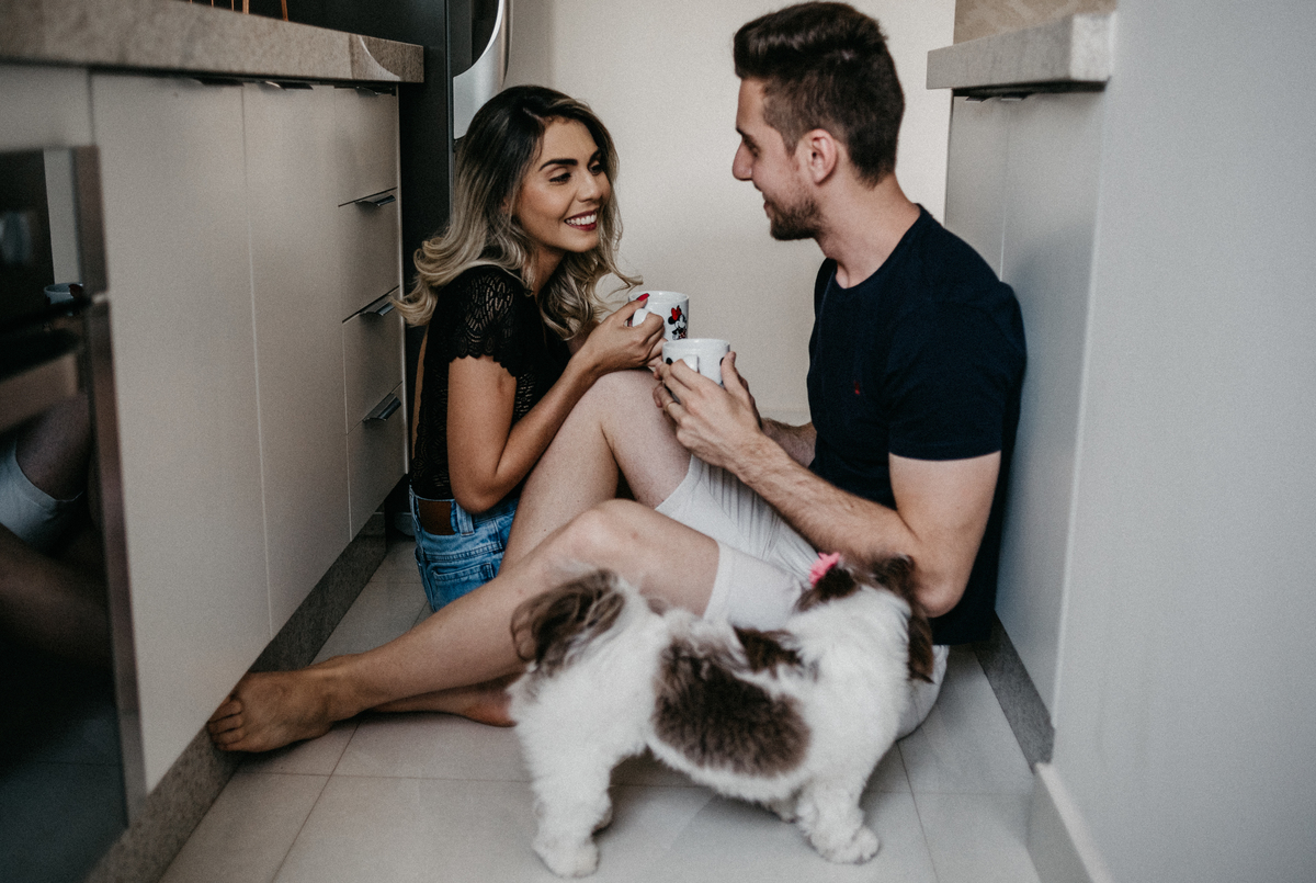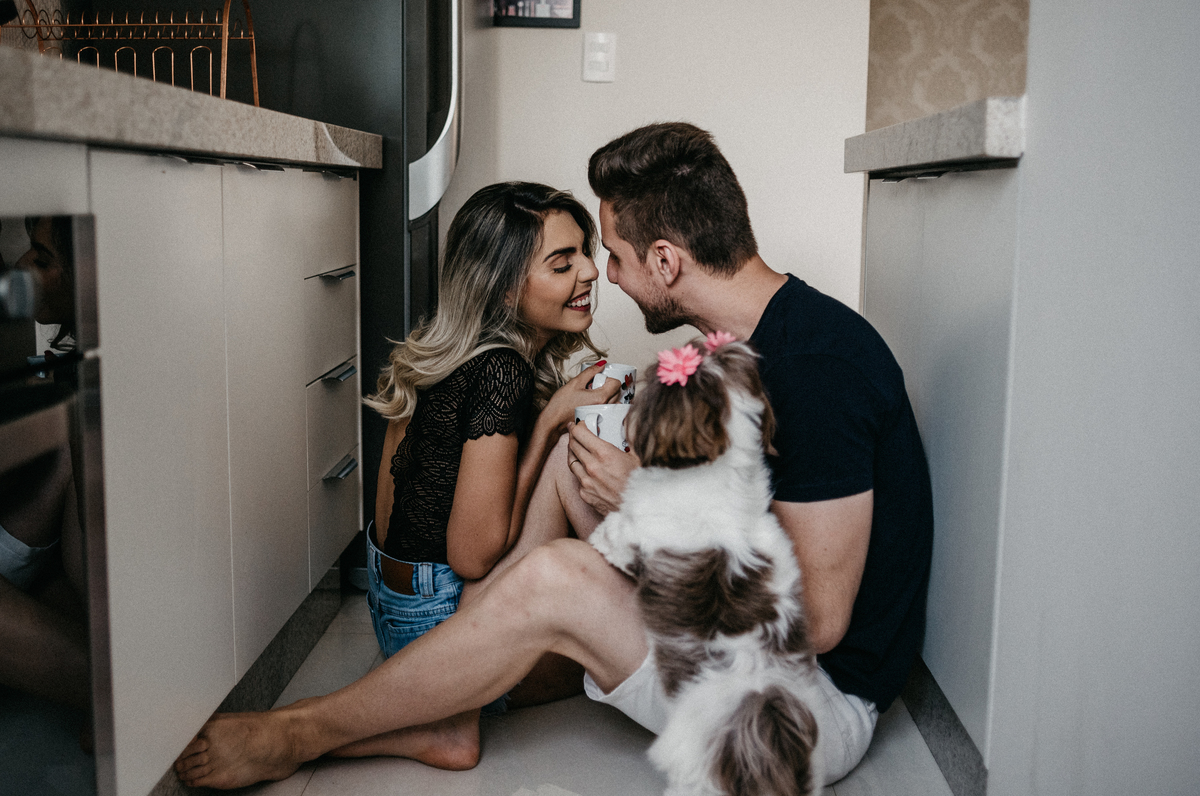 Ensaio em casa, cheio de verdades e simplicidade, do jeitinho do casal.